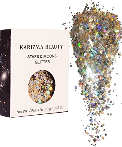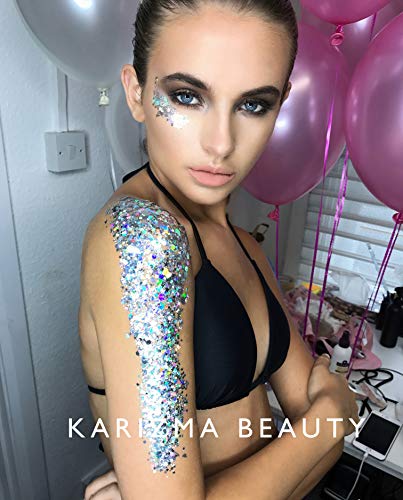 - Current Mood… Starry Eyed: Sparkle Season is here, so send your festival season to the stars with KARIZMA Chunky Holographic Silver Face Glitter. Packed with tiny stars, shimmery dust, hex’s, hearts and our signature Hologram Sparkle, it’s the kind of silver glitter makeup to make martian hearts melt.