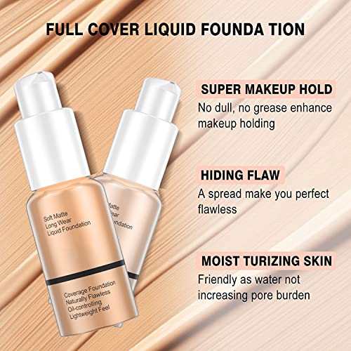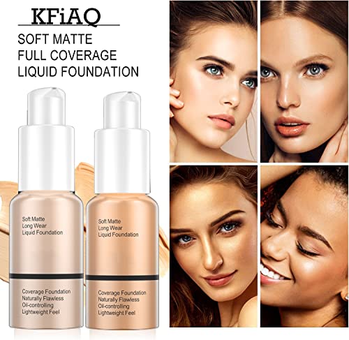 KFiAQ Face Foundation,Liquid Foundation,Foundation Full Coverage Long Lasting 24HR Waterproof Perfect 30ml Matte Oil-Control Concealer,Great Choi