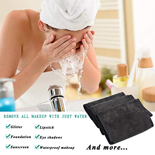 Home Skin Care KinHwa Microfibre Face Cloths for Cleansing Reusable Flannels Makeup Remover Cloth Ultra Soft Washcloths with Water Only 15x30cm Pack of 3 Dark G