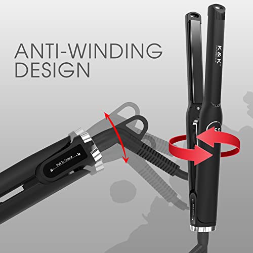 - With the ceramic coating tourmaline plate, the slim straighteners can keep the hair moist, reduce frizz and make your hair more smoothe, provides various angles to make style and better get to the roots and edge.