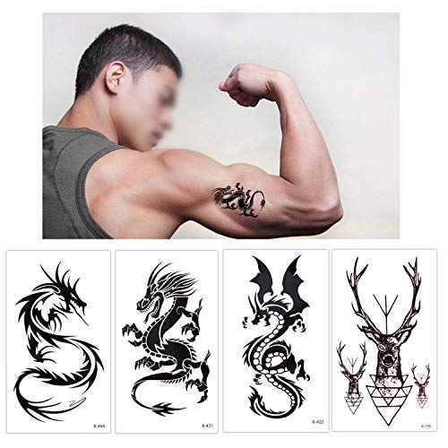 - 【BUY WITH CONFIDENCE】 Our fake half arm temporary tattoo stickers paper kit set cover up pack with letter bow black cover custom chest celtic eye dragon design are backed by a MONEY-BACK & SATISFIED GUARANTEE, your satisfaction is our priority. get it for fun!