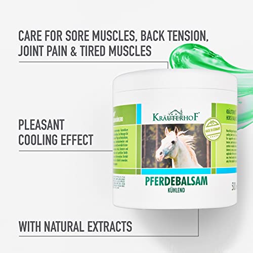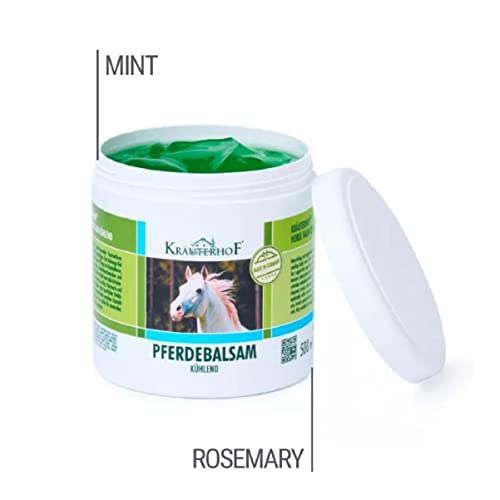 - Kruterhof Horse Balm Cools and Revitalises Precious Herbal Extracts from Horse Chestnut Arnica Rosemary and Mint Oil 500 ml Tub Sealed with Aluminum Foil