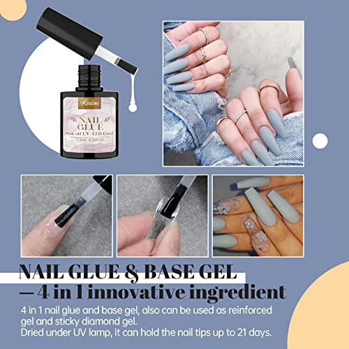 - 【Upgraded 4-in-1 Base Gel and Nail Glue】 Can be used as nail tips adhesive, gel nail polish base gel, reinforced gel and sticky diamond gel. No need to buy other function nail gel! Curing under the lamp within the 30s-60s, long-lasting over 21 days. No bend, more sturdy and durable!
