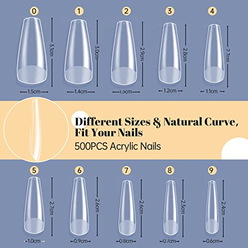 - 【500 PCS Nail Tips】 10 different sizes with 50 artificial nail tips of each size with natural curve, shape and length, fit your nail perfectly! Strong tenacity as well as easy to apply, cut and file. Healthy and no odor. It is no harm to natural nails. Very good for begginer to do nail extension.