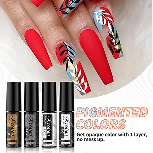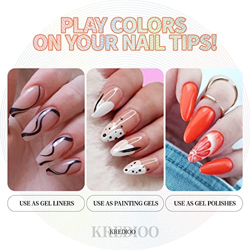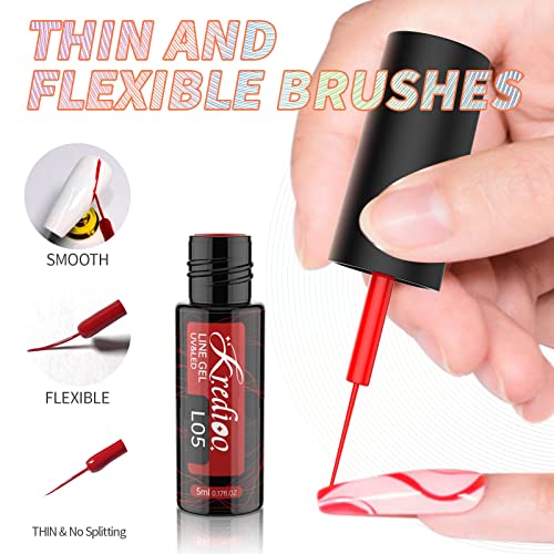 - 💖【Safety & Long-lasting】Kredioo nail art gel liner polish consists of natural resin and non-toxic ingredients, which are safe, have low odor and will not harm your skin and nails. Long-lasting for 28+ days with perfect shine under proper application.