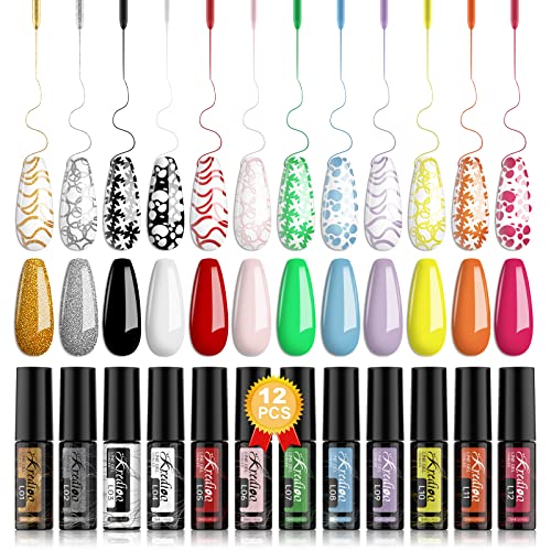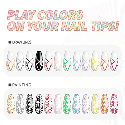 - 💖【Nail Art Liner Gel Polish】 Porpular trendy 12*5ml nail art gel liner gel polish colors of classic black red white purple gold silver, summer neon yellow hot pink green can meet your all nail art colors need. You also can mix them up to create a new color.
