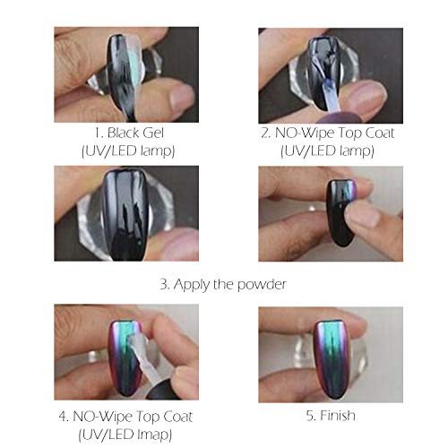 - Simply choose your black colour base coat, then apply the chameleon nail powder for a shimmering finish guaranteed to enchant. Our glitter gives you the confidence to achieve whatever you dream of with nail polish that commands respect.