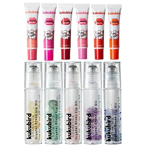kukubird 6pcs Lip Tattoo Peel & Reveal Waterproof Lipgloss 5pc Lip Tint Makeup Set Beauty Set- Liptint/Lip Oil Set
