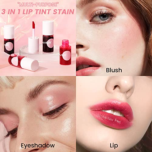 - (3 in 1 Lip Check Makeup) This lip cheek tint is not only for the lips, but also can be used as blush and eye shadow.Not just a single lip gloss, with bright colour, liquid texture and its blendable texture can be used with other products.