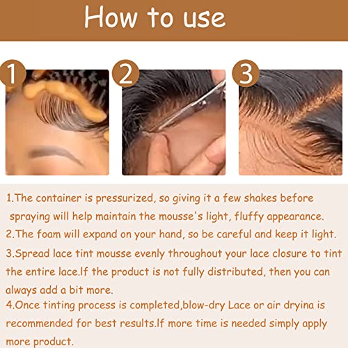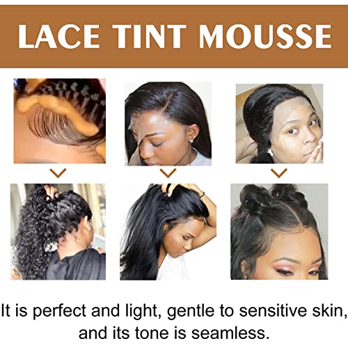 - 【Portable & Easy to Carry Lace Tint Spray】Please shake it before use! Spray for lace to skin application is designed to help you retain and control a natural look that reduces unnatural hair movement. Lace tint mousse easy to change the color of lace wig, portable for travel use and very convenient.