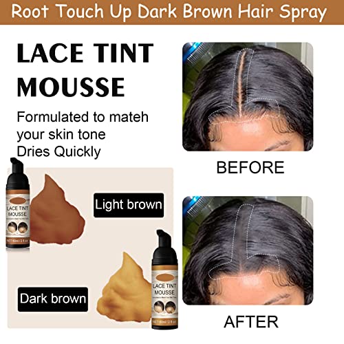 - 【Fast- drying Hair Spray】Dark brown hair spray allows the trim edges of the lace wig to blend better with your scalp for a more natural look when you wear the wig.Redefined your lace wig routine with the lace tint spray.Create a pretty look and get ready to save time with our root touch up spray.
