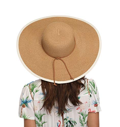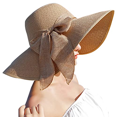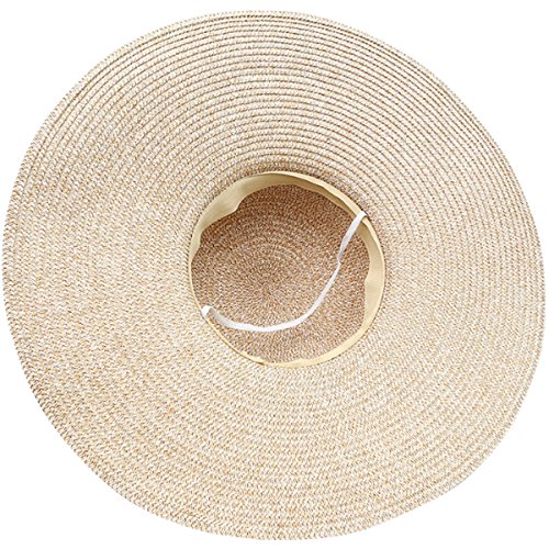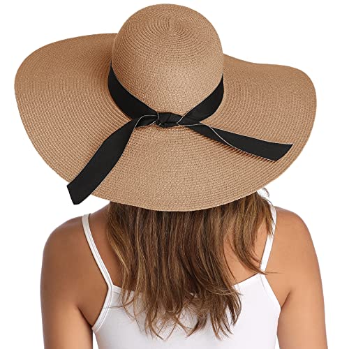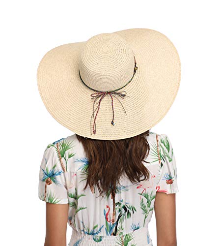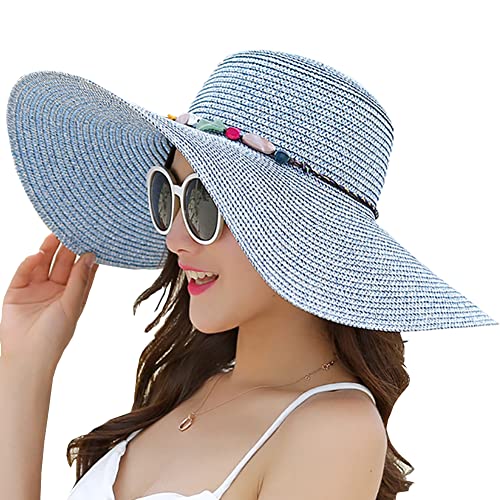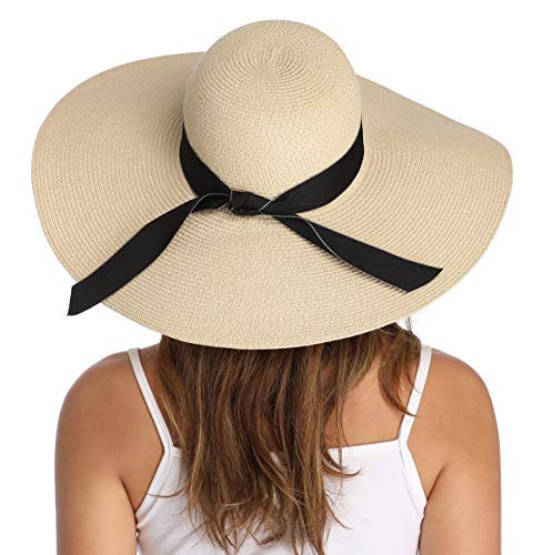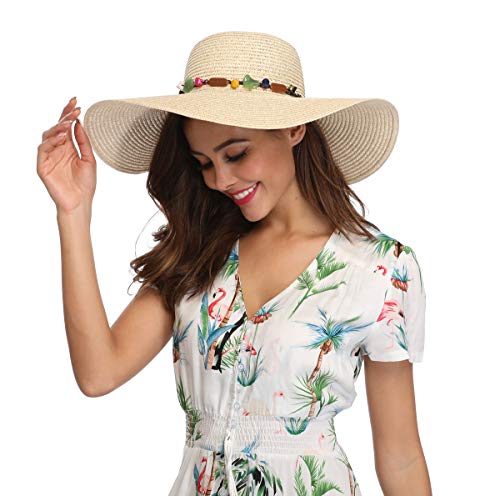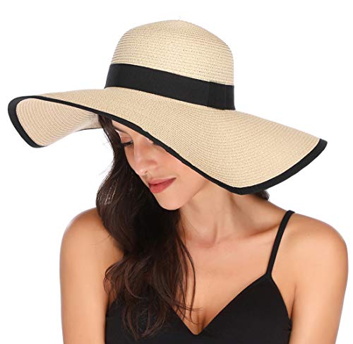 Lanzom Womens Wide Brim Straw Hat Floppy Foldable Roll up Cap Beach Sun Hat UPF 50+