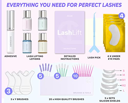 - 💙 EASY TO USE, ALL IN 1 LASH LIFT KIT - Contains everything you need to create fuller, thicker, beautifully curled eyelashes. We give you the tools you need to complete 7-10 full treatments from the get-go including 4 premium lotions, adhesive and loads of high quality brushes and tools. We also include our exclusive simple-to-follow expert guide on how to achieve the best results!