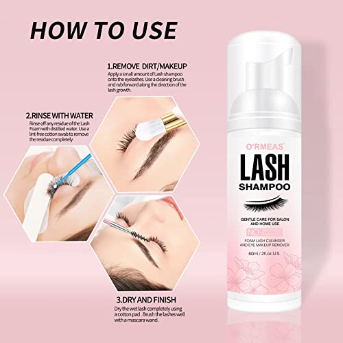 Lash Shampoo for Eyelash 60ML + Brush & Mascara Wand Eyelid Foaming Cleansing, Extension Cleanser Remover,Makeup Remover,Salon and Home Use Lash Shampoo for Eyelash 60ML + Brush & Mascara Wand Eyelid Foaming Cleansing, Extension Cleanser Remover,Makeup Remover,Salon and Home Use