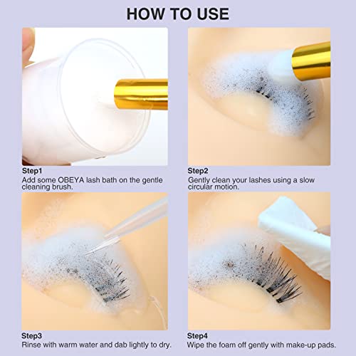 - [Deep Cleaning & Nourishing] This foaming lash cleanser is formulated to remove oil or makeup from eyelashes easily. Cleaning your eyelashes with Obeya eyelash cleaner before applying extensions will help to prolong the life of your extensions.