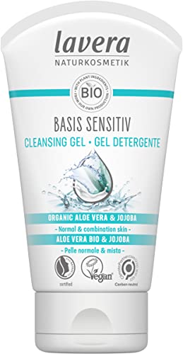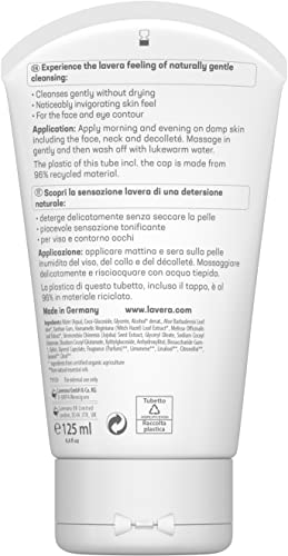 - Mild cleansing gel for face and décolleté: The mild lavera cleansing gel cleanses the skin particularly gently and thoroughly and provides it with moisture and nourishment. Apply to damp skin on the face and décolleté in the morning and evening.