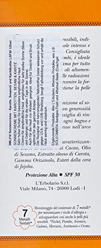 L'Erbolario Sun Cream containing Carrot/Sesame Oil and Shea Butter with SPF 30 quantity