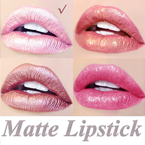 Lip Stick,Matte Lipstick Pink Lipstick Makeup Metallic Light Lipsticks,Lipsticks For Women Long Lasting Waterproof Non-Stick Cup Not Fade Glitter