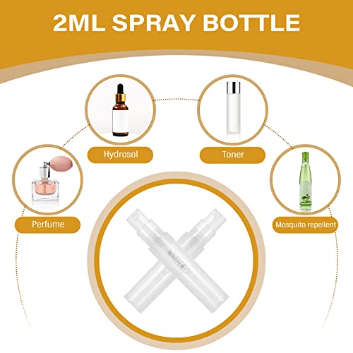 Liseng 200Pcs Mini Atomiser Spray Bottles 2ml Empty Refillable Small perfume essential oils for Travel, Liquid Cosmetic Trial packaging