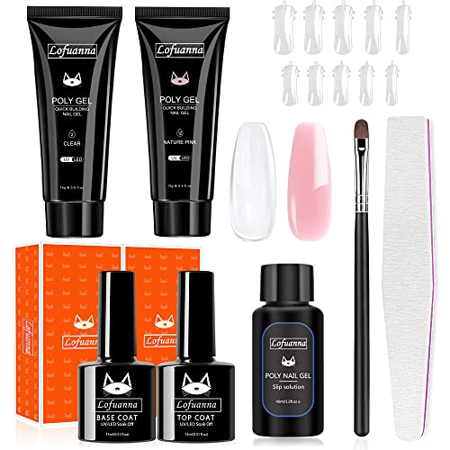 Lofuanna Poly Gel Nail Kit-2 Colors Gel Extension Nail Kit Starter kit,15ML Clear&Natural Pink Colors Builder Gel With Slip Solution,All-in-one N Lofuanna Poly Gel Nail Kit-2 Colors Gel Extension Nail Kit Starter kit,15ML Clear&Natural Pink Colors Builder Gel With Slip Solution,All-in-one N