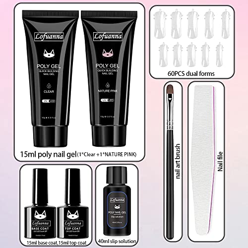 Lofuanna Poly Gel Nail Kit-2 Colors Gel Extension Nail Kit Starter kit,15ML Clear&Natural Pink Colors Builder Gel With Slip Solution,All-in-one N