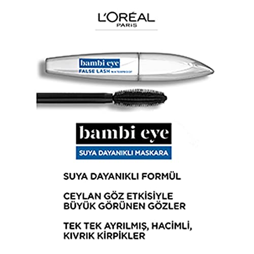 L'Oreal Paris Mascara, Bambi Eye False Lash Mascara, Water-proof Black for Lasting Curl and Definition, 6.7 ml