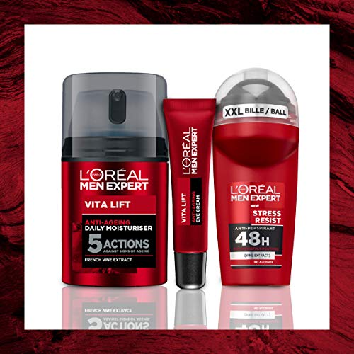 L'Oréal Paris Men Expert Anti-Ageing Eye Cream, Vita Lift Anti-Wrinkle Mens Eye Cream Targets Eye Bags, 15 ml