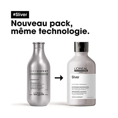 L'Oréal Professionnel Anti-Yellowing Hair Shampoo for White, Grey and Bleached Hair, Violet Pigments, Serie Expert, Silver Shampoo, 300 ml