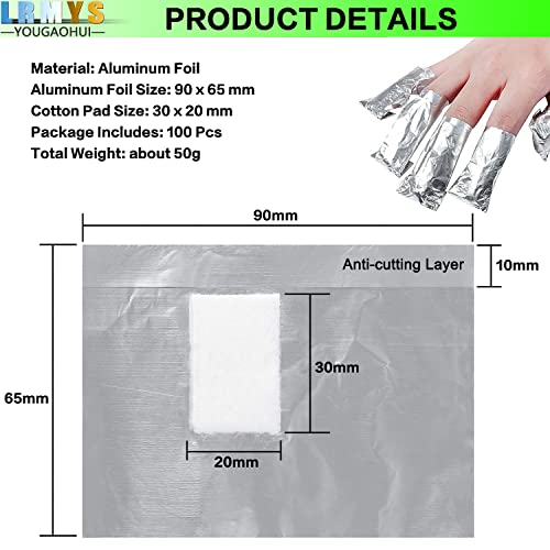 - 【PACKAGE INCLUDES】- Please note that the acetone liquid remover is NOT INCLUDED. Only 100 Pcs foils wraps with cotton pads for gel polish acrylic nails removal.