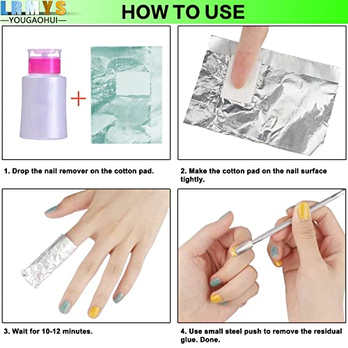 - 【EASY TO USE】- The nail gel wraps remover foil is easy to use, you just pour an appropriate amount of nail polish remover on a cotton pad, wrap it on fingers or toes in aluminum foil, wait for 10-12 minutes to remove the nail polish. Can be used with any soaking gel product.