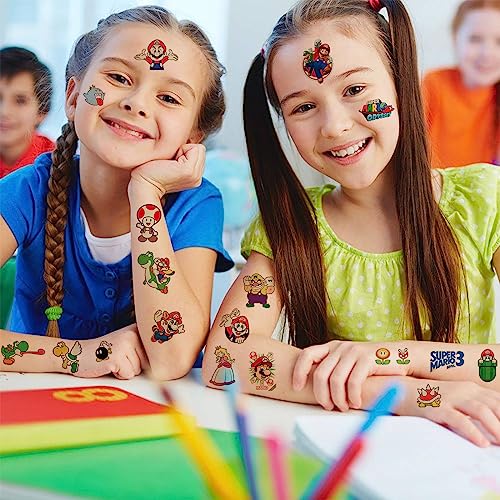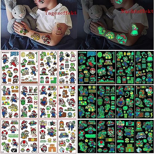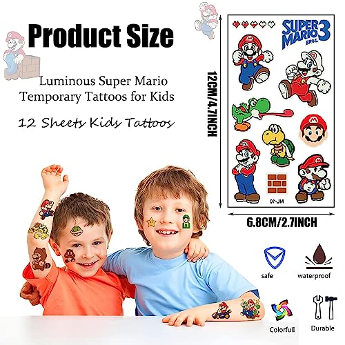 Luminous Super Mario Tattoos for Kids 12 Sheets,Cute Mario Temporary Childrens Tattoos Stickers,Glow Transfer Tattoos for Children Party Bag Fill