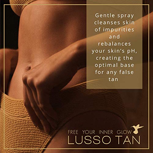 • ✨ PREPS AND PRIMES SKIN FOR TANNING: For best tanning results, get your skin ready with Lusso Tan Primer. This gentle spray cleanses skin of impurities and rebalances your skin’s pH, creating the optimal base for any false tan. Simply spray onto face and body before tanning to cleanse, plump and protect the skin. Dries instantly. No waiting, no mess, no fuss! Perfect for busy mums on the go. Can also be used after tanning for a moisture boost and as a facial mist to prime and set your makeup.