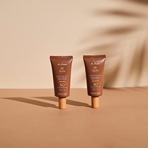 - IMMEDIATE UV PROTECTION & MOISTURISER IN ONE: The M. Asam Intensive Anti-Aging Face Sun Cream with SPF 30 by asambeauty protects the skin from the negative effects of UV light-induced skin damage and ageing. During sunbathing, the skin is protected against UVA and UVB radiation as well as free radicals.