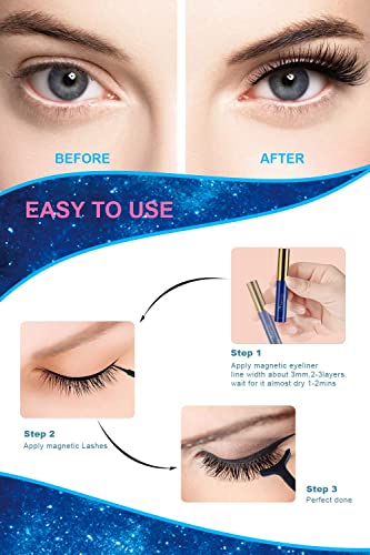 - ♥[All-Day Long-Lasting and Safe]: Our magnetic eyelashes use the latest magnetic liquid eyeliner that is waterproof and does not fade. The eyeliner lasts for more than 8 hours, making your eyelashes more lasting and charming. The magnetic liquid liner is comfortable and safe enough, and it is a tested and proven safe formula.