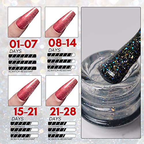 - More Shine & Longer Lasting Gel Top Coat: Mirror shine finish and high-gloss wear, the top coat gel nail polish can last more than 30 days. No nicks, ,streaks, texture wears off, chips or smudges.