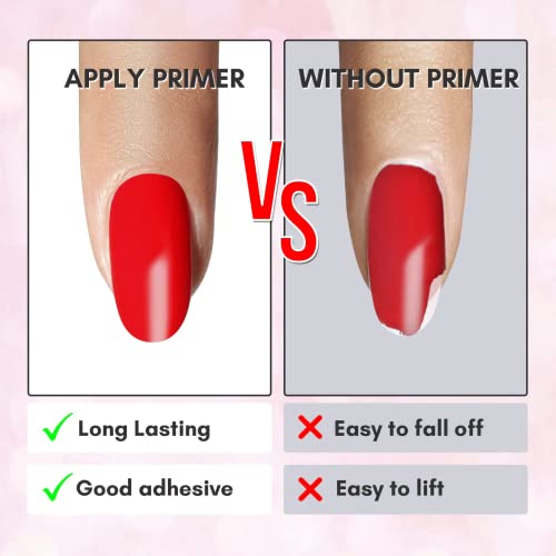 - NAIL PRIMER: Avoids any dirt, air, or water seeping in the gap between your natural nails and gel nail. Prevents nail gel lifting, breaking, or peeling off.; Protects natural nails; Makes the color gel more lasting.