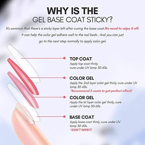 - Important: There will be a sticky layer after curing, that’s literally fine and just apply your polish on it. You don't need to wipe it off and the stickness doesn't mean it's not dried.