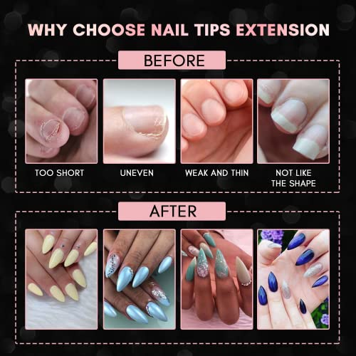 - Full Cover Design: The nail tips for acrylic extensions are designed with perfect length and sharp-ending shape.If you clip the top of the nails , it become coffin shaped nails.which means there are two shapes for your choice.