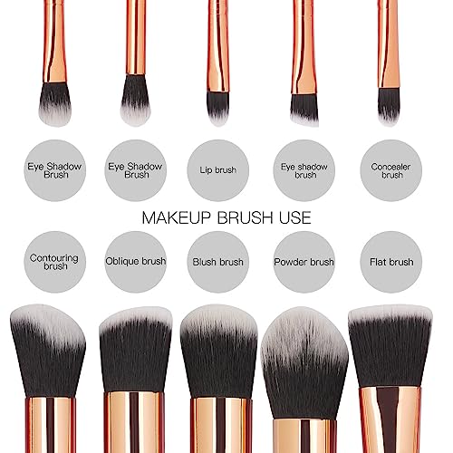 - ♛MAKEUP BRUSH SET:10pcs makeup brushes for foundation, blush, powder, bronzer, eyeshadow, eyeliner, eyebrow, lip, concealer, highlighter or blending, meets all your application of makeup. It is perfect for both beginners and professional makeup artist.