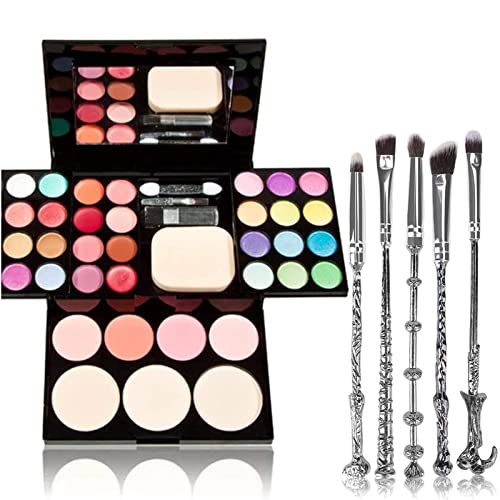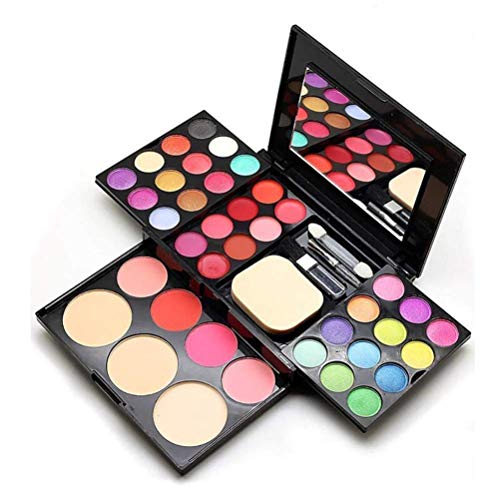 - Meet All Your Needs Of Makeup: Our eyeshadow palette comes with 24 colors eye shadows + concealer+ foundation powder +3 colors blusher + 4 colors lipstick & tools.Makeup Palette pack size: 14.5*11*3cm; Eyeshadow diameter: 2cm; Face Powder:4.5cm; Blusher: 3.2cm.Total Weight: 360g