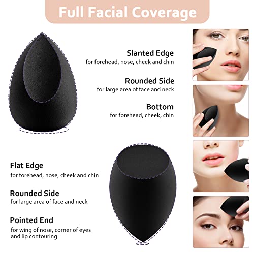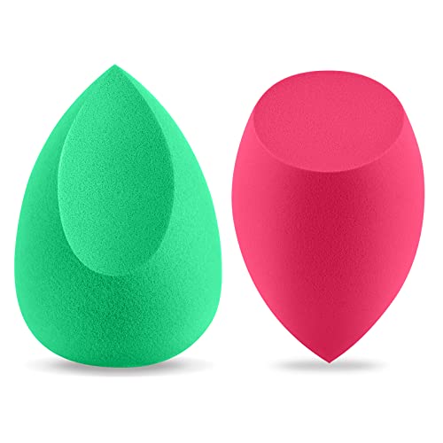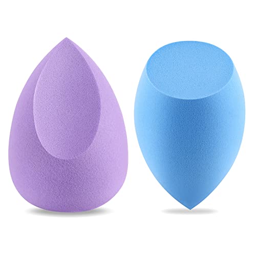 - 【2 Pack Professional Makeup Sponge】 It includes 2 different shapes of beauty blender, one is oblique olive shape, the other is oblique teardrop shape. Unique shapes and cut surfaces are easy to cater to specific parts of your face. The wide rounded side is perfect for cheek and forehead, the slanted or flat side is suitable for smaller areas (like nose and chin), and the pointed end is ideal for targeting the tight corners under eyes.