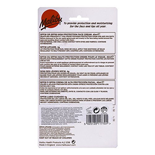 Malibu Duo Pack Sun Protection Face Cream SPF 50 & Lip Balm SPF 30 Water Resistant