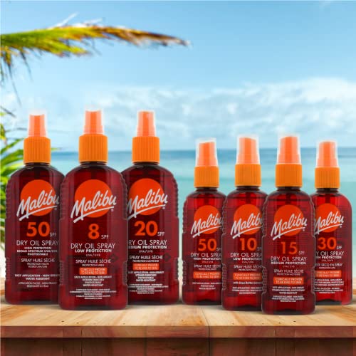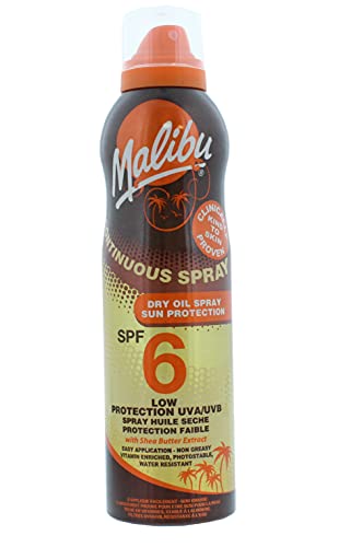 Malibu Sun SPF 8 Non-Greasy Dry Oil Spray for Tanning with Shea Butter Extract, Low Protection, Water Resistant, 200ml Malibu Sun SPF 8 Non-Greasy Dry Oil Spray for Tanning with Shea Butter Extract, Low Protection, Water Resistant, 200ml