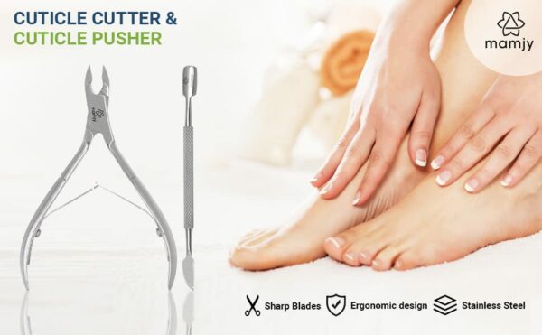 • Mamjy cuticle cutter with cuticle pusher, professional cuticle remover tool kit, cuticle nipper, pedicure manicure tools for fingernails and toenails, cuticle clippers & cuticle pusher tool