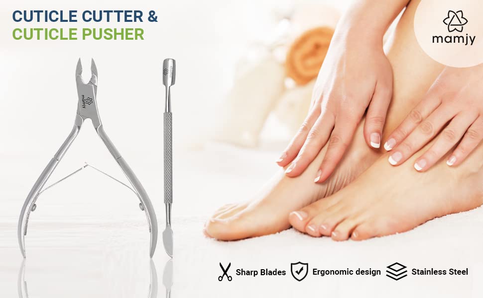 Mamjy Cuticle Cutter with Cuticle Pusher, Professional Cuticle Remover Tool Kit, Cuticle Nipper, Pedicure Manicure Tools for Fingernails and Toen Mamjy Cuticle Cutter with Cuticle Pusher, Professional Cuticle Remover Tool Kit, Cuticle Nipper, Pedicure Manicure Tools for Fingernails and Toen
