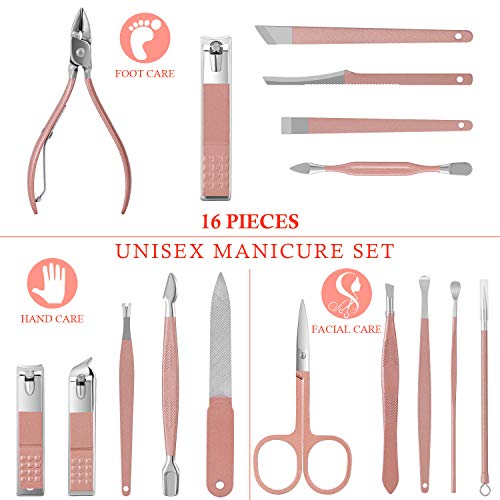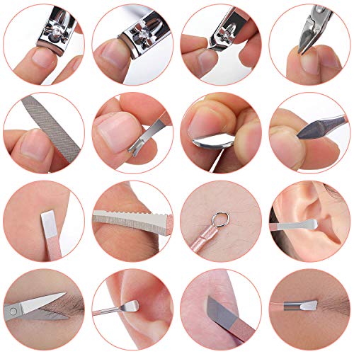 - ➤ MULTI-FUNCTION CARE KIT(16pcs) - Your professional nail clippers set contains the tools to do a manicure and pedicure, also tools for facial. All 3 clippers (large, small, and angled), the cuticle nipper, cuticle scrapper, and the other various scrapers were impressively sharp. The care set provide all the different options and that you have several choices in one place as the pieces stay where they are intended