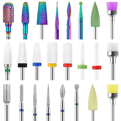 - Perfect Bits: A total of 24 pieces different nail drill bits, suitable for most nail drill machines that use 3/32" bits, suitable for long-time use. They can be used for buffing the nail surface or even penetrating narrow areas such as sidewalls and cuticles The drill brush drill helps to clean and shine the nail surface and drills