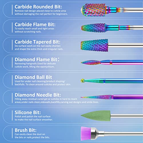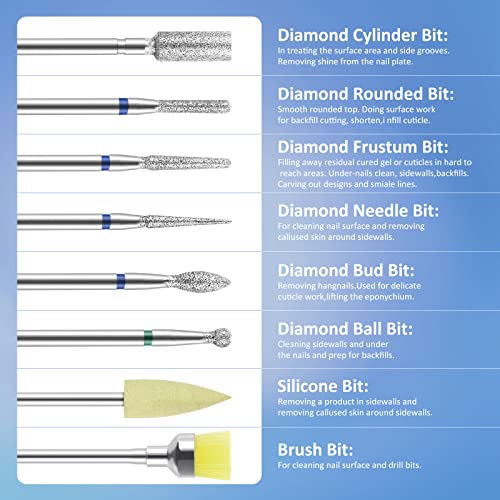 - Easy-to-Clean Safety Drill Bit: Nail drill bits are corrosion-resistant and won't clog nails. Nail Brush Bit can easily clean the dust on the bits or nails, protect the bits after each use, and keep you and your client's nails healthy