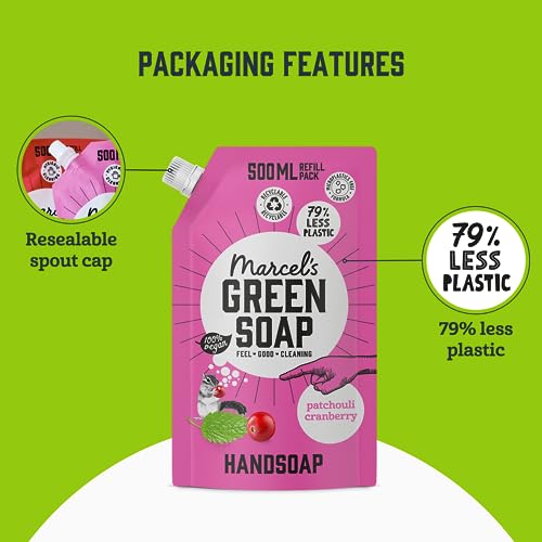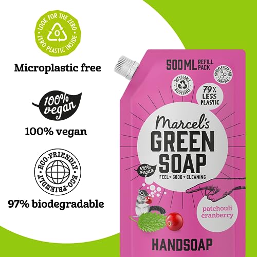 Marcel's Green Soap - Hand Soap Refill Patchouli & Cranberry - Handwash Dispenser Refill - 100% Eco friendly - 100% Vegan - 97% Biodegradable - 5 Marcel's Green Soap - Hand Soap Refill Patchouli & Cranberry - Handwash Dispenser Refill - 100% Eco friendly - 100% Vegan - 97% Biodegradable - 5
