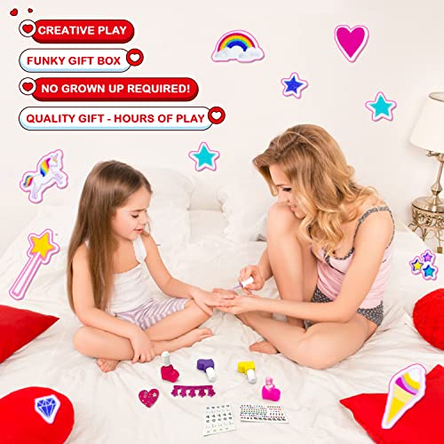 - ❤IMPROVE KIDS CREATIVITY- Our nail polish formula dries quickly, so your little one can get to play without waiting.For kids interested in nail art, this is a good starter kit. Different colored nail polish bottles and shiny stickers are perfect for little fingers to create many design combinations.